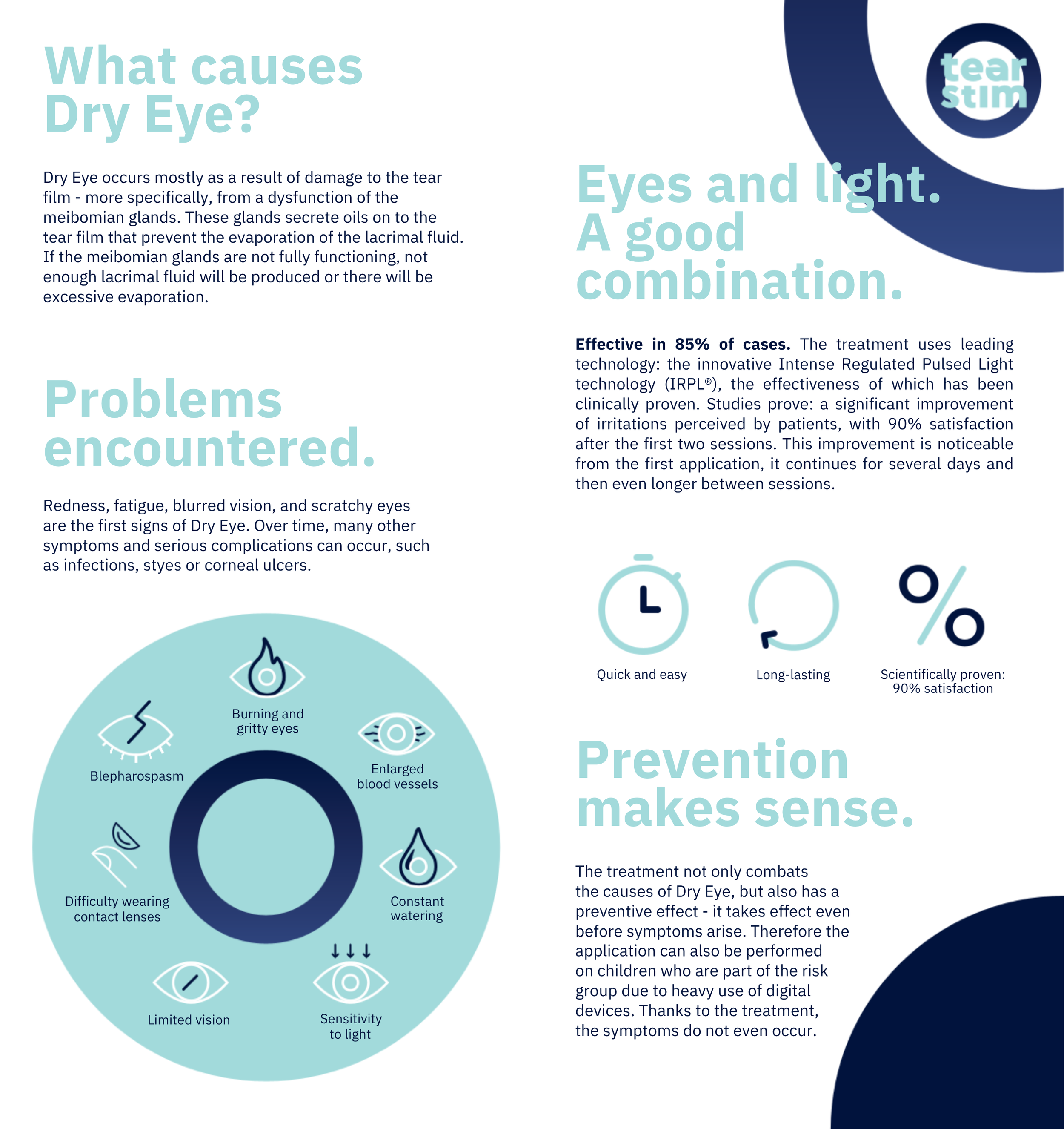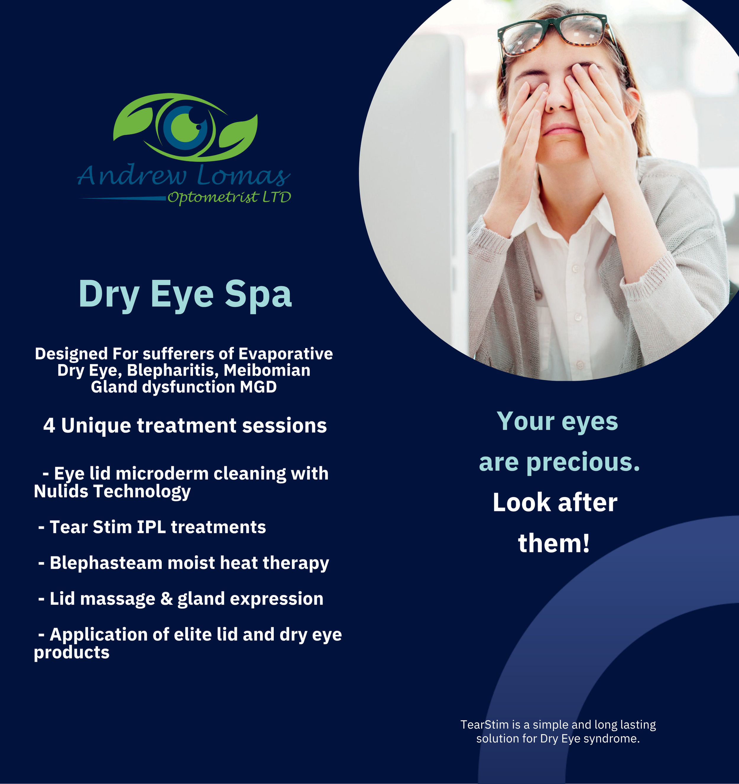 A key component of our therapy is based around Intense Pulse Light therapy. Technology used to treat skin conditions like rosacea and acne is scientifically fine tuned to tackle inflammation in the eye lids, improving eye lid gland secretions and stimulating gland regeneration with Tear Stim. This also boosts collagen rejuvenation in the skin.